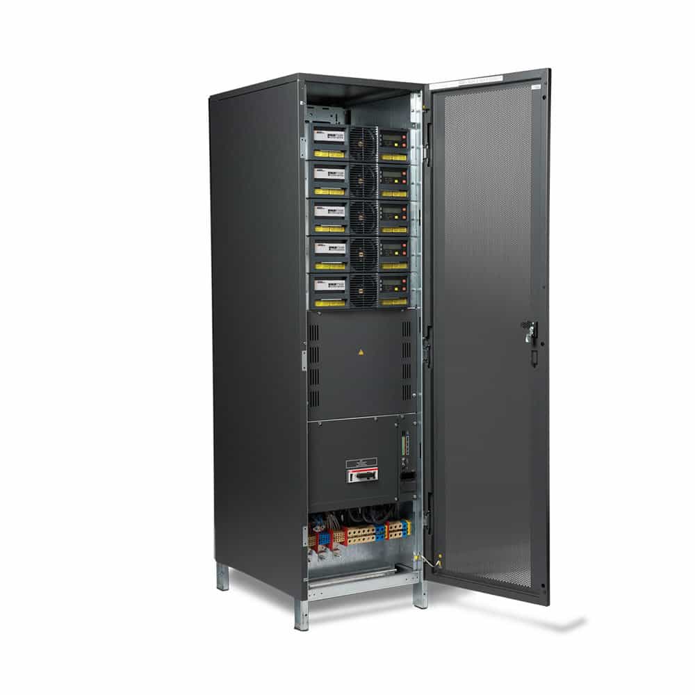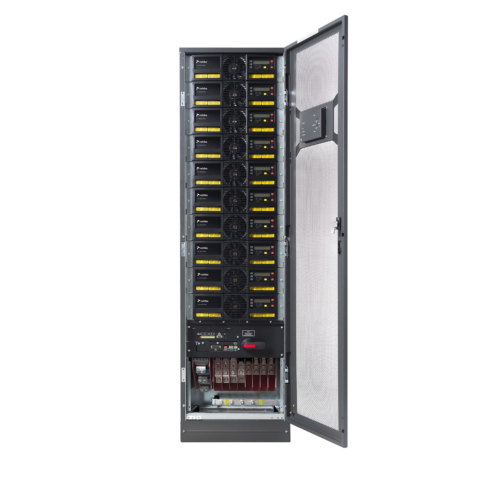 Tower solution for high density applications requiring power from 10 kVA to 200 kVA. 19” rack-mountable solution for integrated IT or telecom applications, providing up to 80 kVA. Parallelable horizontally up to 400kW